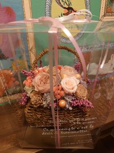 2021年9月2日 懐かしい方から 懐かしい方から教室を始めたお祝いを頂きました。 お花とお煎餅です。 お煎餅は可愛かったのでなかなか手をつけれませんでしたが先日ついに頂きました。 おいしかったです。 お花は玄関に飾らせてもらっています。 ありがとうございました。 お盆休みに頂いたのですが投稿が遅くなってしまいました。